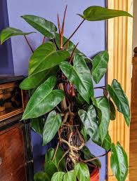 A bold, tropical climber with deep green leaves and striking red stems. Fast growing and easy to care for, it thrives in bright indirect light. Great for adding height and interest to indoor spaces