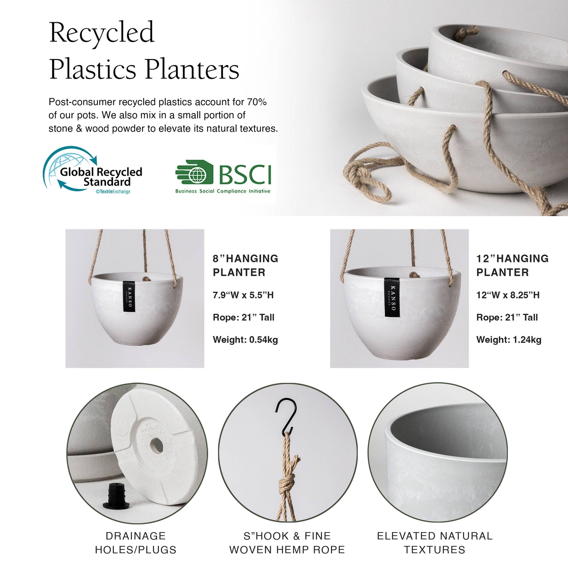 8" | 12" Signature Stone Hanging Planter Pot | 4 Colorways