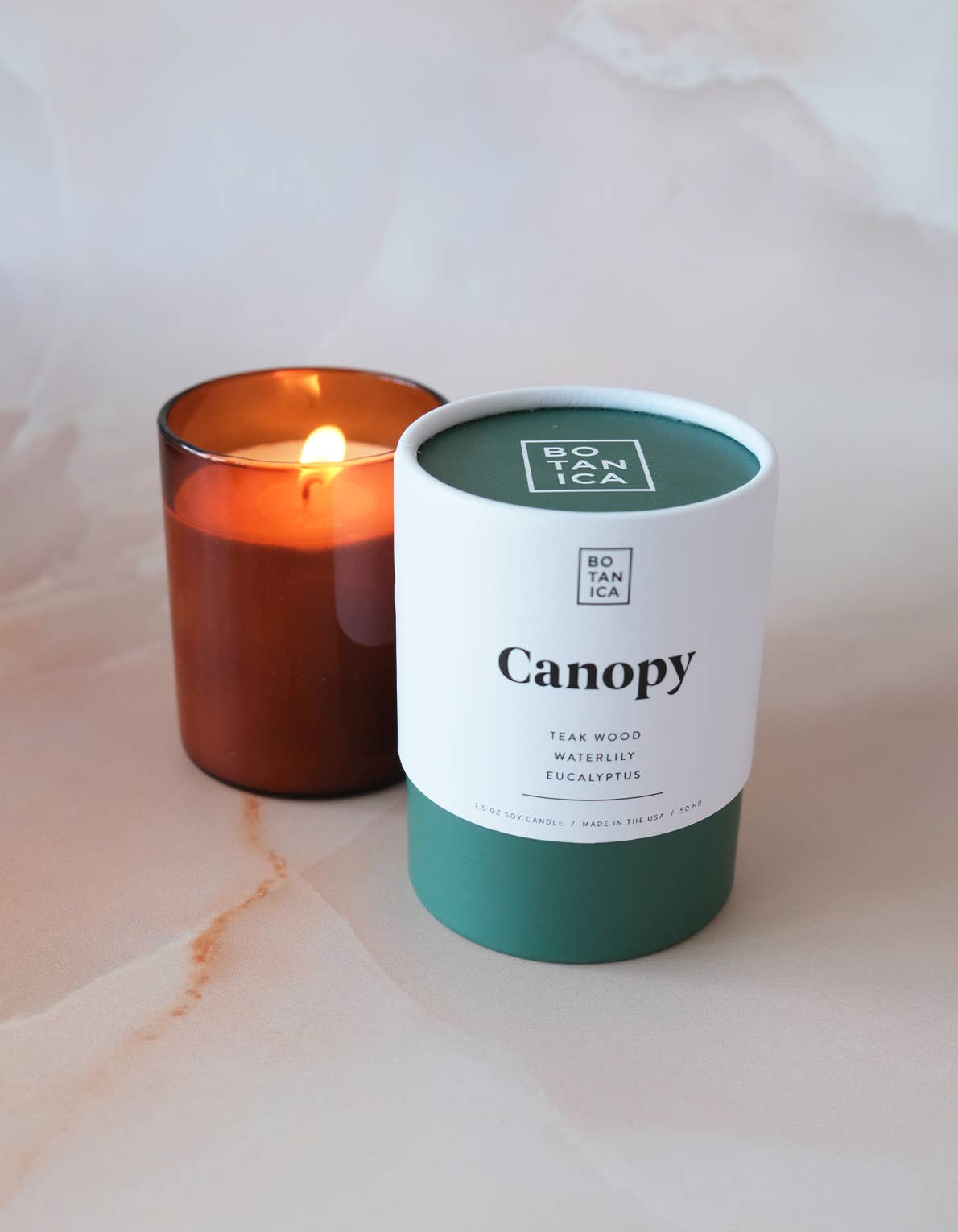 Inspired by the Amazonian Rainforest, notes of verdant wood, eucalyptus & water lily perfume this ever-fresh scented candle. With a base of teak and moss, this scent strikes the perfect balance of a rounded out, deep-woods fragrance.
