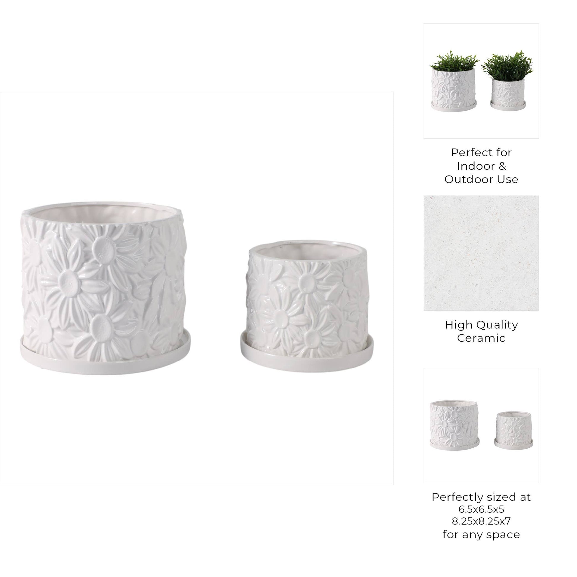 Ceramic Daisy Flower Planters Set of 2 - White, 6/8 in.